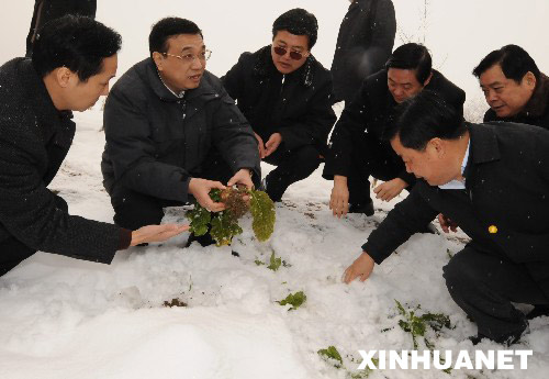 這場罕見的雨雪使農(nóng)作物受損嚴(yán)重。在達(dá)州宣漢縣、巴中通江縣、廣安鄰水縣等地,李克強(qiáng)冒雪深入農(nóng)田、菜地,心情沉重地察看農(nóng)作物和蔬菜受災(zāi)情況。他到貧困戶家中摸糧缸看水缸,并和當(dāng)?shù)馗刹楷F(xiàn)場商討恢復(fù)生產(chǎn)問題,強(qiáng)調(diào)要及早謀劃,做好生產(chǎn)自救的各項準(zhǔn)備,并適時進(jìn)行結(jié)構(gòu)調(diào)整。