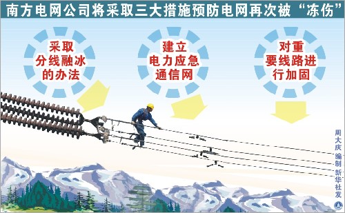 圖表:南方電網公司將采取三大措施預防電網再次被“凍傷” (新華社發)