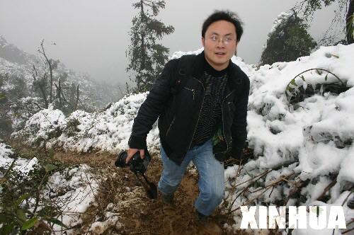 這是新華社實(shí)習(xí)生周科大年三十上山采訪搶修電網(wǎng)的工人。 新華社記者林艷興攝