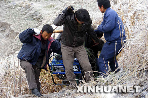 1月27日,在遭受冰災而停電的貴州省黔南布依族苗族自治州龍里縣災區,搶險人員正在為機站運送發電機。 近日,受冰災影響,貴州電網公司都勻供電局的121條輸電線路中斷,造成黔南布依族苗族自治州都勻市停電停水,11個縣停電,縣級公路封閉,黔南移動網絡不同程度受損,直接影響了40多萬群眾的生產生活。 災情發生后,當地公、檢、法干警冒著嚴寒指揮疏導交通,加強警力巡邏;都勻移動系統的500多名職工深入山區搶修機站;一些商店還為方便來往群眾開設燭光超市。災區處處洋溢著溫暖。 新華社記者 楊楹 攝