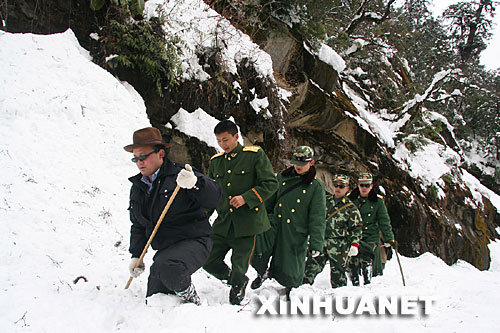 1月23日,武警官兵在云南福貢縣境內(nèi)尋找雪災(zāi)中的失蹤者。新華社記者 楊牧源攝