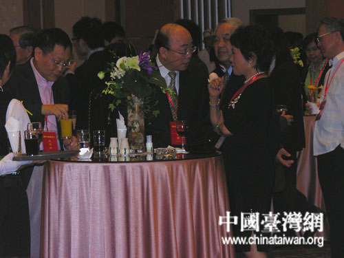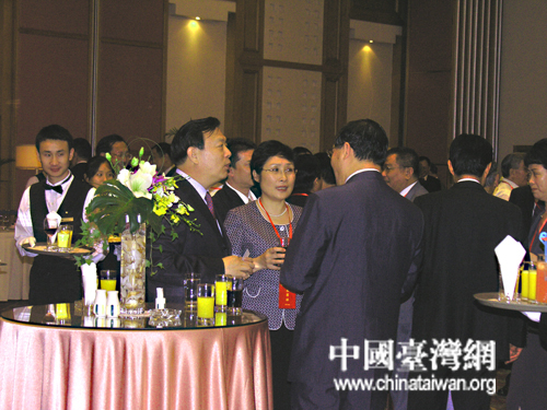 參加晚宴的專家學者在熱烈交談(中國臺灣網李杰 攝) |
