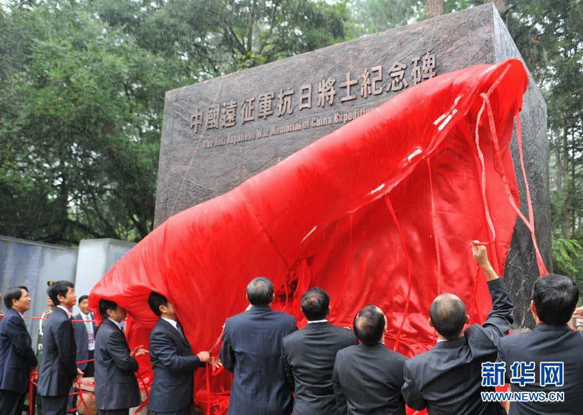 2011年9月14日,在云南省騰沖縣國殤墓園,嘉賓為中國遠征軍抗日將士紀念碑揭幕。(圖片來源:新華網)