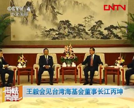中共中央臺辦、國務院臺辦主任王毅20日在天津會見了臺灣海基會董事長江丙坤一行。王毅表示,海協會與臺灣海基會成功舉行第七次領導人會談,標志著兩岸制度化協商又向前邁出重要一步。