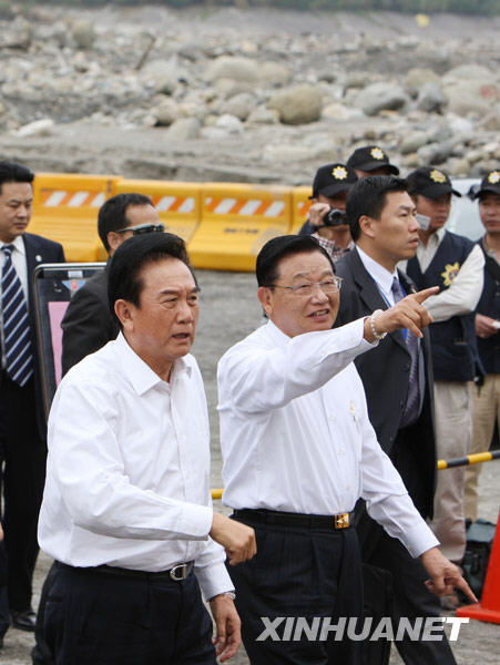 12月24日,海協(xié)會會長陳云林(前左)率海協(xié)會協(xié)商代表團(tuán)部分成員赴南投縣水里鄉(xiāng)新山村,考察“八八水災(zāi)”災(zāi)區(qū)。