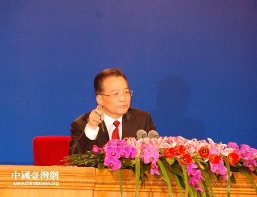中國臺灣網3月16日北京消息 今天上午11時,國務院總理溫家寶應大會新聞發言人的邀請,在人民大會堂三樓大廳與采訪十屆全國人大五次會議的中外記者見面并回答記者的提問。(田云鵬 李艷波)