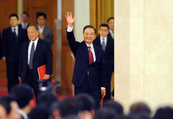 3月13日,國(guó)務(wù)院總理溫家寶在北京人民大會(huì)堂與中外記者見(jiàn)面,并回答記者提問(wèn)。這是溫家寶總理步入會(huì)場(chǎng)。新華社記者謝環(huán)馳攝