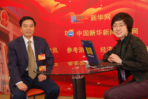 2010年3月8日上午9時,十一屆全國人大三次會議舉行第二次全體會議,聽取全國人大常委會副委員長王兆國關于中華人民共和國全國人民代表大會和地方各級人民代表大會選舉法修正案草案的說明。圖為全國人大代表張炳功接受新華網記者專訪。新華網/中國政府網 丁向峰 攝