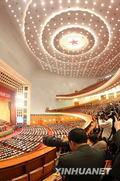 3月13日,中國人民政治協商會議第十一屆全國委員會第三次會議在北京人民大會堂舉行閉幕會。 新華社記者丁林攝