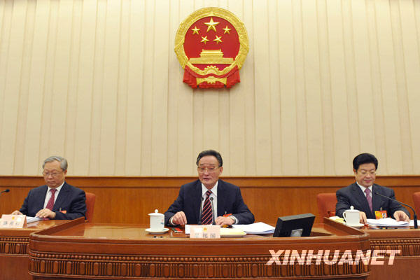 3月9日,十一屆全國人大三次會議主席團在北京人民大會堂舉行第二次會議。吳邦國主持會議。新華社記者 李學(xué)仁 攝