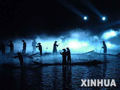5月3日晚,在廣西桂林市陽(yáng)朔縣,演員們正在演出《印象·劉三姐》。 “五一”黃金周期間,大型山水實(shí)景劇《印象·劉三姐》演出由原來的每天一場(chǎng)改為兩場(chǎng)仍是場(chǎng)場(chǎng)爆滿。《印象·劉三姐》正在成為桂林旅游新名片。 新華社記者 周華 攝