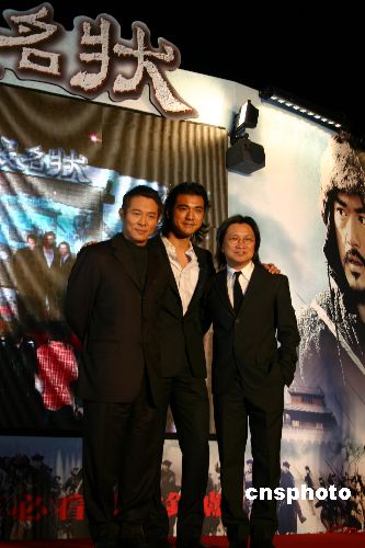 年底最矚目的華語大片《投名狀》十八日晚在臺北舉行了首映禮。導演陳可辛帶領片中明星李連杰、金城武等人參加首映會,并點燃禮花慶祝。中新社發 陳國華 攝