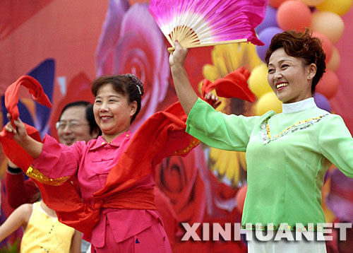 當日,“頌歌向著太陽唱――南京群眾歡慶黨的十七大”大型群眾演唱會在南京水木秦淮廣場舉行。一些文藝工作者和社區群眾載歌載舞,歡慶黨的十七大勝利閉幕。 新華社記者 孫參 攝