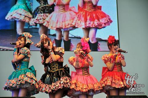 世博網(wǎng)10月29日消息:28日下午, 日本產(chǎn)業(yè)館的JAL舞臺迎來了“Ex-Ceed”樂隊。該樂隊是由4名早安少女組成員——久住小春、夏雅燒、純純和琳琳組成,其樂隊名是特別為來上海世博會演出所征集的。這是該組合自今年六月首次在日本產(chǎn)業(yè)館JAL舞臺上演出之后,第二次在世博會進(jìn)行演出。演出中,“Ex-Ceed”樂隊演唱了數(shù)首耳熟能詳?shù)母枨W詈螅弥形难莩私?jīng)典老歌《茉莉花》,把演出推向了高潮,博得了臺下陣陣喝彩。 (作者:鄒曈 攝影:鄒曈)