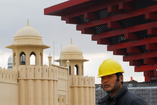 新華網上海12月15日電 12月14日拍攝的上海世博會巴基斯坦館。日前,2010年上海世界博覽會巴基斯坦館封頂亮相,預計今年底完工。巴基斯坦館位于上海世博園區浦東A片區,緊鄰中國館,展館造型是等比例復制巴基斯坦著名的拉合爾古堡。 新華社簽約攝影師 鈕一新 攝