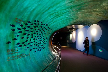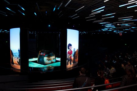 此外,澳大利亞館的劇場也是一個頗為吸引人的場所,不同于許多展館的小型影院,澳大利亞館的劇場足足可以容納1000人同時觀看。15分鐘的影片從3個孩子的視角講述了澳大利亞的發展以及他們對于未來生活的期盼,燈光、音響配合著不停旋轉的屏幕營造了頗為奇特的視覺效果。更有趣的是,劇場的環形屏幕在影片的播放過程中不斷升降著,每次屏幕降下時,劇場的中央都會出現一組與影片情節相關的雕塑。