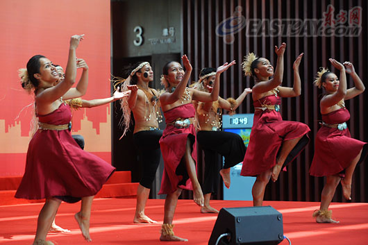 在簡短的儀式之后,來自大洋洲的演員們和來自法屬波利尼西亞的舞蹈表演者還獻上了精彩的演出,飛揚的裙擺和忘情的吶喊把島國的淳樸熱情釋放得淋漓盡致。