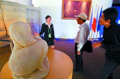 而在展區(qū)內(nèi),一尊1米多高、體態(tài)相當(dāng)豐滿卻沒有頭部的白色雕塑引人注目。奧利弗告訴記者,這是馬耳他的國寶“大地之母”的復(fù)制品。“大地之母”有6千多年的歷史,其豐滿的體態(tài)凸顯了當(dāng)時(shí)對于肥胖的崇拜,在當(dāng)時(shí)的人看來,肥胖是豐收和強(qiáng)大生命力的象征。