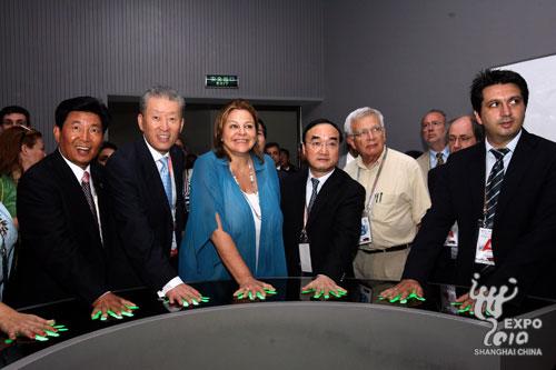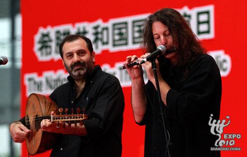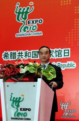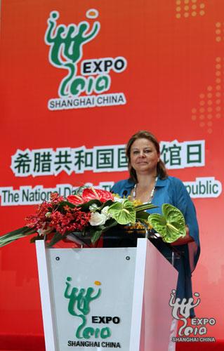 希臘國家館日官方儀式19日上午在世博中心隆重舉行。希臘經(jīng)濟(jì)、競(jìng)爭力與海運(yùn)部部長盧卡·卡策莉(Loukia Katseli),中國交通運(yùn)輸部副部長翁孟勇出席儀式并致辭。上海世博會(huì)中國政府副總代表趙亞力出席儀式。