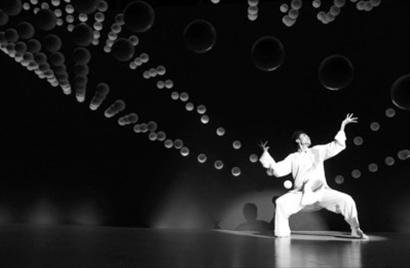 “活力矩陣”由1008個白色小球組成,每個小球直徑15厘米。這些小球均由導線牽引,整體由電腦控制,表演背景則是四季輪回。從冬天開始,經(jīng)歷春夏秋冬的輪回之后,最后回到春天。離表演結束還有1分34秒時,一位太極舞者突然出現(xiàn)在舞臺上,長袖善舞、進退自如,讓人大呼精彩。