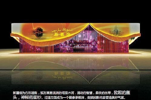 王克林說,新疆館將通過最先進的三面折幕電影技術,展現新疆悠久的歷史、多元的文化、大美的山河,豐富的資源和現代的城市。同時還有一些互動技術來展示特有的新疆元素,這將是新疆館最富魅力、最值得期待的部分。