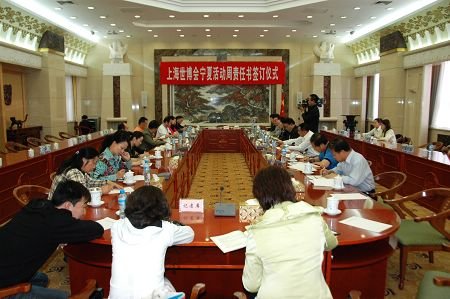 寧夏參與上海世博會籌備委員會辦公室和自治區文化廳有關領導與活動承辦單位簽訂責任書。