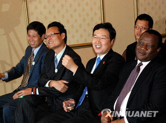 1月21日,在南非首都約翰內斯堡,中國駐約翰內斯堡總領事房利暢談上海世博會倒計時100天。新華社發(梁銓攝)