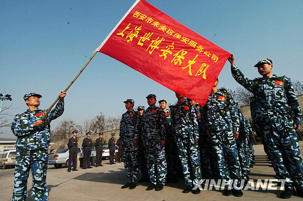 3月10日,服務(wù)上海世博會的56名西安保安準備出發(fā)前往上海。