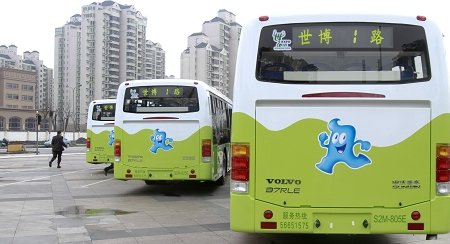 活動現場,幾輛嶄新的“世博1路”公交車首先引起大家的注意,專線車輛為最新款VOLVO國4尾氣排放環保車,全部選用自動變速箱、配備GPS導航系統,車門處的低踏板設計方便乘客上下車,而翻出的斜踏板為無障礙通道。與此同時,車輛的安全設施配備也很齊全。