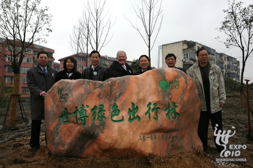 中國(guó)環(huán)境與發(fā)展國(guó)際合作委員會(huì)秘書(shū)長(zhǎng)、原國(guó)家環(huán)保總局副局長(zhǎng)祝光耀出席儀式,并親手種下第一株樹(shù)苗。來(lái)自上海市環(huán)保局、上海世博局、上海市綠委辦公室、上海市徐匯區(qū)政府、美國(guó)環(huán)保協(xié)會(huì)、中國(guó)民促會(huì)綠色出行基金以及77家行業(yè)協(xié)會(huì)和企業(yè)的代表參加了世博綠色出行林的揭牌儀式和植樹(shù)活動(dòng)。
