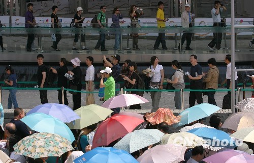 高溫、炙烤,上海世博會(huì)開園第二天,上海最高氣溫驟然升高至近30℃,園區(qū)內(nèi)冷飲、陽傘等“清涼”生意紅火,高溫“烤”驗(yàn)的不僅是園區(qū)內(nèi)的各色噴霧、降溫裝置,還有烈日炎炎下依舊排隊(duì)候場(chǎng)的觀展者耐心。
