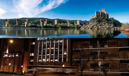 葡萄牙案例館提供的照片顯示:位于葡萄牙Almourol鄉(xiāng)村的“可搬運的游客塔”與城堡相應(yīng)成景(上圖)。 夜色中的葡萄牙里斯本的“可搬運的游客塔”(右)(下圖)。