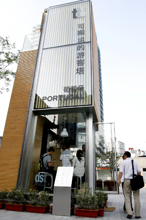 葡萄牙“可搬運的游客塔”強(qiáng)調(diào)簡潔和實用(6月6日攝)。新華社記者 程敏 攝