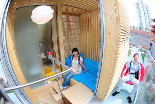“造價還是有點高”,了解到小屋的整體造價需要大約80萬人民幣時,陳龍說,“盡管按單位面積來算,也算不上天價,但在我們的城市里,并不容易找到隨時可以安放的地方”。設(shè)計方帶來的這個案例展示,是想給需要這種房子的人一個購買的機(jī)會,也是提供一個房屋居住的解決方案,特別是在房價很高的城市里,這樣的設(shè)計符合世博會的主題,城市讓生活更美好,關(guān)鍵是要為不同的需求提供相應(yīng)的解決方案。通過親身體驗,陳龍和杭星的共同感覺是,這樣的現(xiàn)代化“蝸居”解決方案相當(dāng)有意義,目前雖然還只是在實驗階段,但未來的前景應(yīng)該是很廣闊的,關(guān)鍵在于要把成本再降低,再解決安放地點許可的問題。 “能住在這樣的房子里,還是挺誘人的,特別是對買不起住房的年輕人來說,也多了一種選擇”。