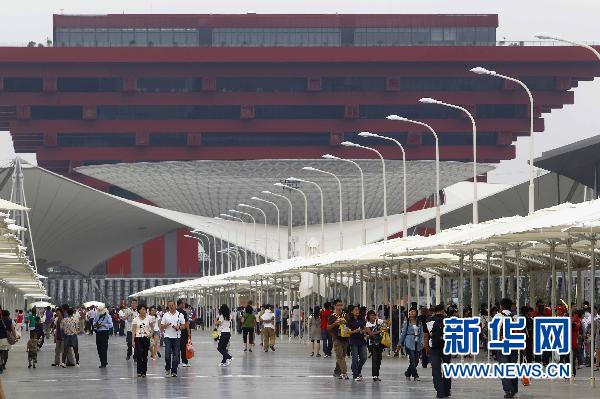 6月5日,游客經(jīng)過世博園浦東園區(qū)的人行步道。 新華社記者裴鑫攝