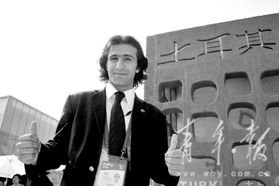 在土耳其館里有一個始終忙碌著的小伙子,他時而出現(xiàn)在咖啡館里招待貴賓,時而在館外歡快地跳著民族舞,時而進(jìn)行人員調(diào)度,又時而扮演新聞官、翻譯的角色。這位1984年出生的土耳其小伙給自己取了一個“挺括”的中文名字——趙忠海,當(dāng)記者笑言他簡直就是萬金油時,他若有所思地點(diǎn)了點(diǎn)頭,“又學(xué)了一個新詞,哈哈!