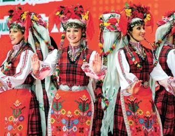 14日,保加利亞演員在國家館日活動上表演民族特色歌舞。張海峰 攝