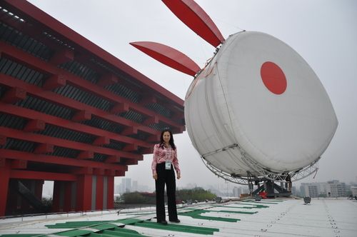 澳門館的玉兔宮燈的兔頭由充氣飛艇的專用織物所造,兔頭可根據風向轉動,保持迎風姿態。