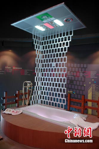 中國衛浴品牌與洋品牌鏖戰世博園。圖為中國衛浴企業推出的“全球最夢幻衛浴空間”。楊然 攝