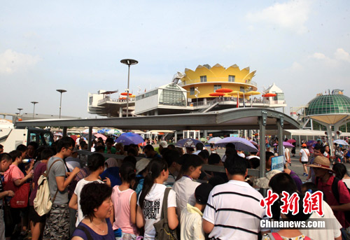 早在6月15日,首批60名“立升水衛士”就已經上崗維持秩序。運營商從勞務市場緊急招聘30名保潔員,并從公司抽調200名青年員工分5批,到園區負責直飲臺的清潔和引導游客飲水。