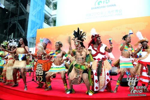 用熱情奔放的民族傳統(tǒng)歌舞慶祝加蓬共和國(guó)國(guó)家館日 攝影:陳麗娜
