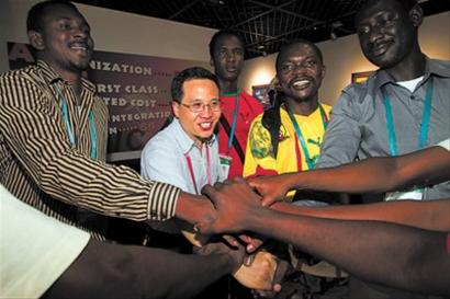 身材瘦小的陳錦田,走起路來風(fēng)風(fēng)火火,說起話來激情洋溢,舉手投足總是那么利落和自信。這位小個(gè)子男人,管理著世博園占地面積最大的場(chǎng)館非洲聯(lián)合館,有三個(gè)半足球場(chǎng)之大,館內(nèi)有42個(gè)國(guó)家館和一個(gè)非盟,場(chǎng)館面積和參展國(guó)數(shù)量都創(chuàng)下歷屆世博會(huì)之最。