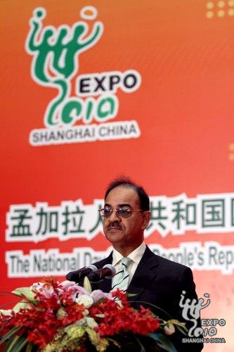 法魯克·汗表示,孟加拉政府和人民非常高興能參加在上海這一充滿活力的歷史名城所舉辦的世博會。他認為,上海世博會對孟加拉來說是一個獨特的平臺,不僅可以讓孟加拉熟悉了解最新的科技創新,同時向世界展示孟加拉在不久的將來成為南亞商業中心的潛力。