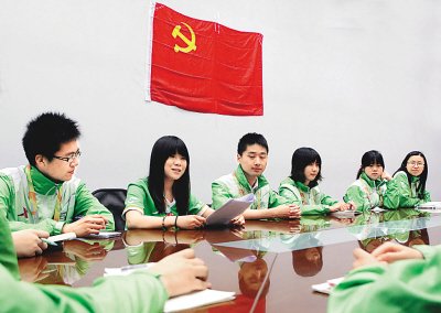 6月1日,復旦新聞學院世博臨時黨支部在世博園區內過組織生活。新華社發