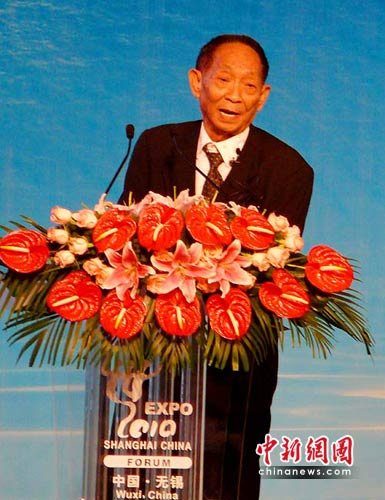 中新網無錫6月20日電(記者 洪曉紅 孫文荊)“如果全球50%的稻田種植雜交稻,世界稻米總產量可增加1.5億噸,可滿足超過4億人的糧食需求”,中國“雜交水稻之父”袁隆平今日在無錫舉行的“科技創新與城市未來”世博主題論壇上表示,面對全球日益嚴峻的糧食安全挑戰,中國樂意幫助其他國家發展雜交稻,解決世界糧食短缺問題。