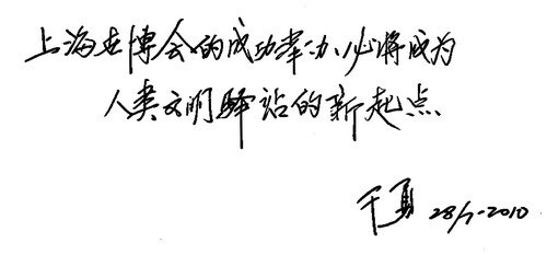2010年上海世博會正如火如荼地進行著,中國正全面敞開心扉,迎接著來自全世界五湖四海的朋友,充滿活力的嶄新城市將向世人宣告:城市,讓生活更美好!城市的文化、建設和運行將是人類生活質量的最主要的表征!(中國工程院副院長干勇)