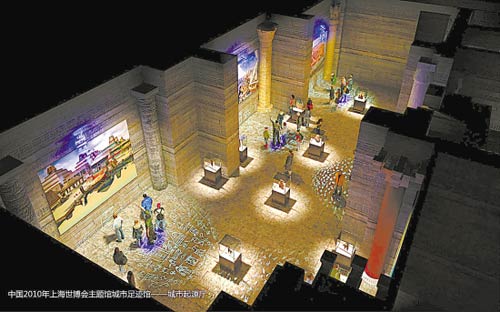 城市足跡館分為三個展區(qū),分別表現(xiàn)城市文明的出現(xiàn)、成熟,以及全球城市化帶來的挑戰(zhàn)。 展館核心思想是:在走向現(xiàn)代文明的歷程中,人、城市、環(huán)境一直在互動發(fā)展。在這個過程中留下的人類足跡,反映了人類文明的智慧和成就。