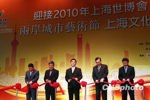 10月16日晚,“相約上海——2010年上海世界博覽會”圖片展在臺北市最繁華的信義新天地“香堤大道”揭幕,臺北市長郝龍斌、臺北世貿中心董事長王志剛等剪彩。作為兩岸城市藝術節臺北上海文化周的一項重要內容,該展覽以靜態的圖片展示輔之以熱鬧多樣的廣場綜藝演出,吸引不少臺北市民駐足觀看,上海世博會走進臺北的推介勢頭良好。中新社發黃少華攝