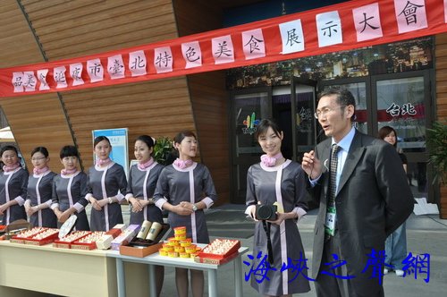 提起臺北美食,就會想到臺北的夜市文化及道地的小吃,尤其世博園臺北案例館迎賓影片、101劇院播放的影片中,不時出現小籠包、牛肉面、烤香腸、還有士林夜市的蚵仔煎、大餅包小餅、花枝羹,看得大家好喜歡,頻頻向工作人員提問。為了回應觀眾的熱情,臺北館特別舉辦了這一次活動,把臺北的的鳳梨酥、茶葉、牛肉干、梅心糖等臺北特色美食一字排開,讓許多大陸的游客有“意外的收獲”。
