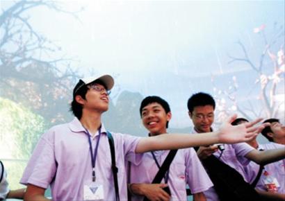 一組4人穿著同樣的T恤在世博園內(nèi)參觀,言語間還有臺灣口音,讓她們與其他游客略有不同,一些好奇的游客主動走過來與她們攀談。“你們是臺灣來的?”“是啊。”“是學(xué)生嗎?什么學(xué)校的?”“我們是建國高中的。”